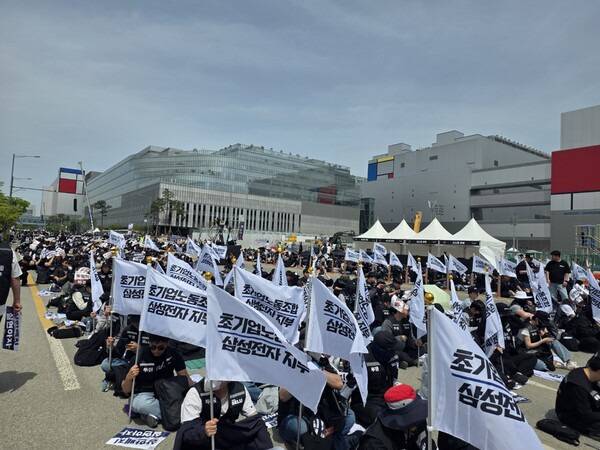 노조는 평택캠퍼스 결의대회가 회사 측을 향한 최후통첩이라고 밝혔다. 이들은 영업이익의 15%를 상한선 없이 성과급으로 지급할 것을 촉구하며 총파업으로 사측을 압박하고 있다. 노사 합의가 이뤄지지 않을 경우 다음 달 21일부터 6월7일까지 18일간 총파업에 돌입한다.