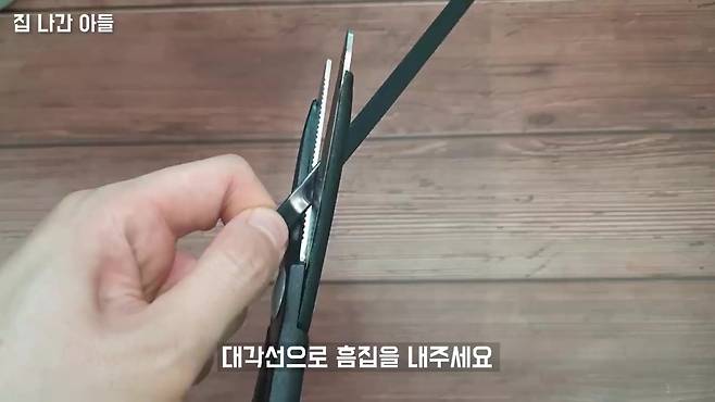 케이블타이 양쪽에 대각선 칼집을 내주세요. 양쪽 모두 칼집을 낸 뒤, 한 번 비틀어줍니다. 이렇게 하면 마찰 면이 늘어나 이물질을 더 잘 긁어냅니다. 세면대 배수구에 케이블타이를 넣고 왔다 갔다 해보세요! 머리카락이나 찌꺼기가 쏙쏙 나옵니다.