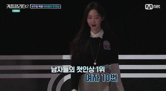 여자 10번은 남자들의 첫인상 투표에서 1위를 차지했다. 여자 출연진들은 "제가 봐도 제일 예뻤다" "처음 보자마자 예쁘다고 생각했다"라며 인정했다.