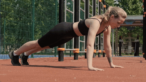 매트 위에 엎드립니다. 팔꿈치를 구부리면서 몸 전체를 바닥으로 천천히 낮춥니다. 이때 엉덩이가 처지거나 들리지 않게 주의합니다. 가슴이 바닥에 거의 닿을 정도로 내려갔다가, 팔을 펴면서 천천히 원래 자세로 돌아옵니다.