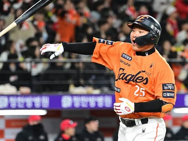 대전한화생명볼파크에서 열린 기아타이거즈 경기에서, 한 번 홈런을 날리며 정규시즌 새 홈구장 1호 홈런의 주인공이 됐습니다.