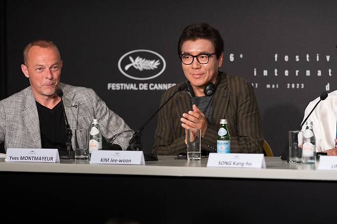 칸 국제영화제 공식 기자회견은 김지운 감독을 비롯해 송강호, 임수정, 오정세, 전여빈, 정수정, 박정수, 장영남이 참석한 가운데 프랑스 현지 시간 기준 오후 12시 45분부터 약 40분가량 팔레 데 페스티발(Palais des Festivals)의 프레스 컨퍼런스 룸(Press conference room)에서 진행됐다. <거미집>의 공식 기자회견에는 <거미집>에 대한 열띤 관심을 입증하듯 각국 언론들의 다채로운 질문들이 이어졌다.