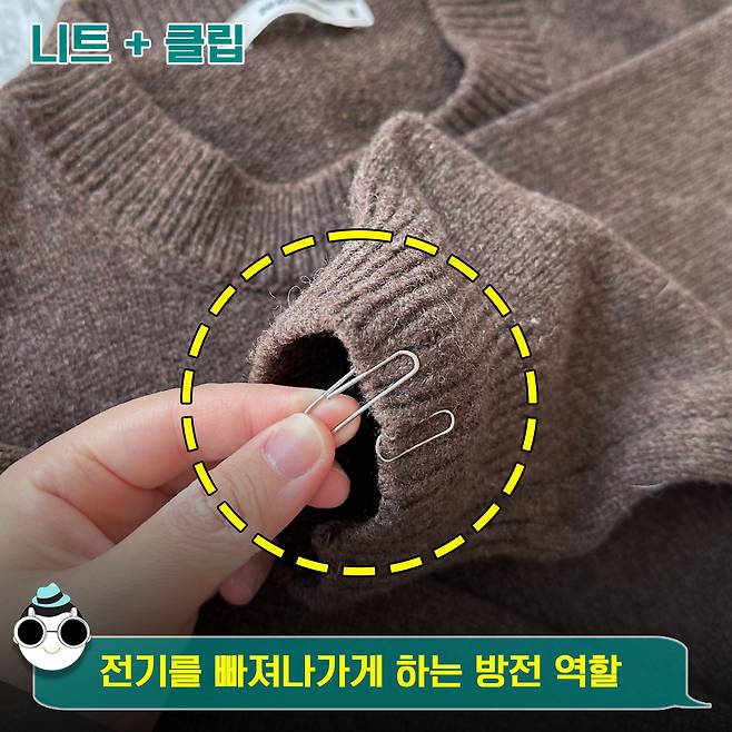 클립이 왜 여기서 나와? 싶지만 니트 입을 때 ‘클립’ 하나만 있으면 정전기 방지에 엄청 좋다는 말씀. 훗.
