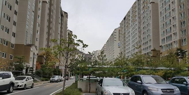 아파트 주차장이 협소하고 놀이터 인근 차도..