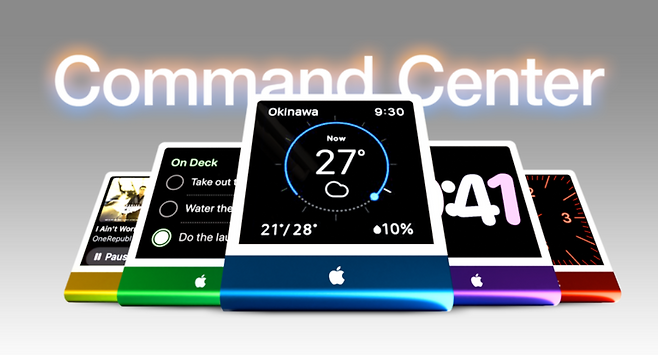 애플은 스마트홈 기술의 새로운 중심이 될 명령 센터를 선보일 예정이다. 6인치 디스플레이를 적용한 소형 기기로 FaceTime 통화, 동영상 감상, 스마트홈 제어 등의 기능을 탑재했다. 테이블 위나 벽에 설치 가능하며, 여러 대를 방마다 배치할 수 있을 만큼 경제적이다. 캘린더, 애플 뮤직, 애플 포토 등 기본 앱이 탑재되며, 별도의 앱 스토어는 제공되지 않을 것으로 예상된다.