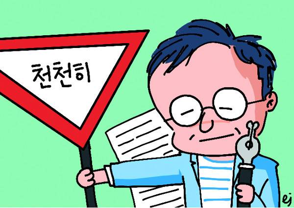 위에 인용한 문단은 소설가 김탁환 선생이 마음이 조급해질 때마다 찾아 읽는다며 지난 1월 페이스북 담벼락에 올렸던 작사가 한돌의 글이다. 읽어볼수록 맞는 말인데 심리기획자 이명수 선생은 거기에 “세상에서 빨라도 되는 건 앰뷸런스뿐”이라는 댓글을 달았다. 탁월한 소설가의 인용에 통찰의 명수다운 댓글이다.