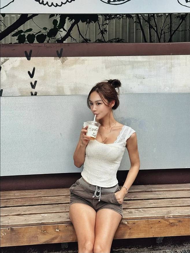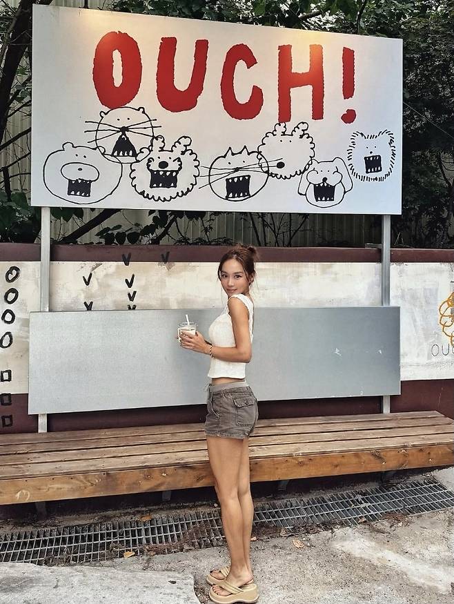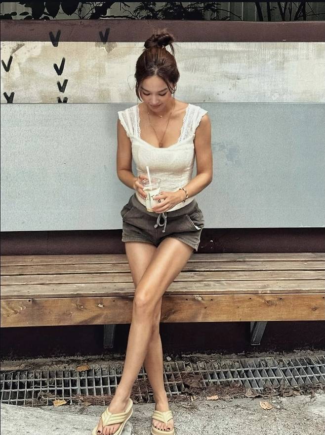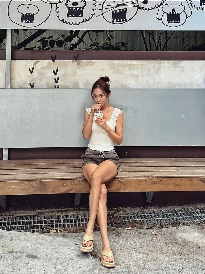 여기에 웨지 샌들로 편안함과 스타일을 동시에 잡으며 길게 뻗은 각선미로 감탄을 자아냈습니다.