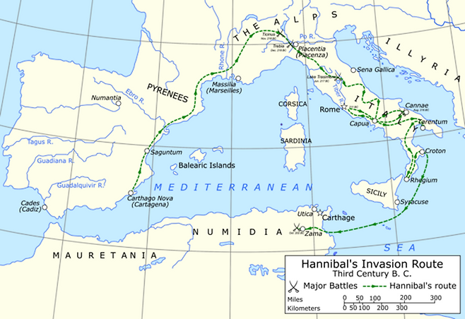 BC218년 스페인을 식민지화한 카르타고의 한니발이
