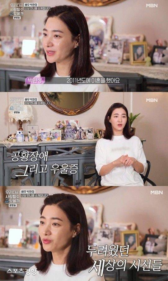 이어 박현정은 이혼에 대한 이야기를 꺼냈다. 그는 "배우 생활 5년 만에 결혼하고 두 딸을 낳고 13년 동안 결혼생활을 유지했다"며 "이혼을 결심하고 혼자가 된 후 우울증에 공황장애까지 왔다"라고 고백했다.