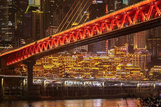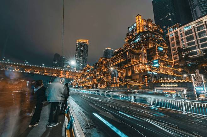 먼저 빼놓을 수 없는 곳은 홍야동으로, 강변 절벽 아래 수직으로 지어진 전통·현대 건물이 네온조명과 어우러져 야경 명소로 화려함을 자랑해요. 낮에는 골목을 걸으며 상점과 카페를 즐기고, 밤에는 빛으로 물든 풍경을 감상하면 좋습니다.