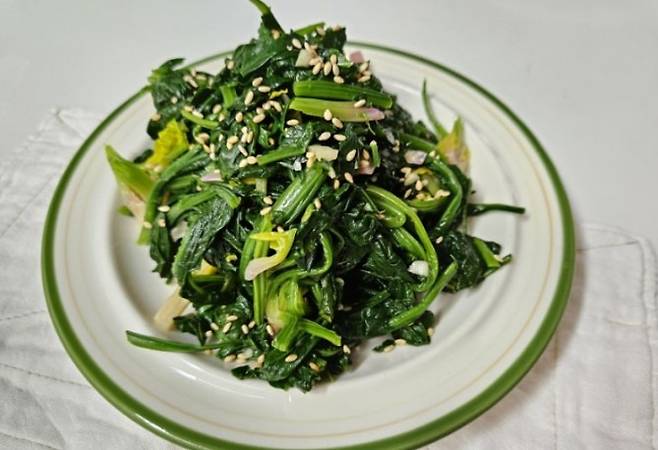 이렇게 무쳐낸 남해초 무침은 소금기 없이도 달큼하고 고소한 맛이 나며, 기름기 없는 밥 반찬으로 혈압 부담 없이 매일 먹을 수 있는 건강식입니다.특히 저녁 식사에 곁들이면 나트륨 배출 효과가 커져, 밤 사이 혈압 상승을 막는 데 도움이 됩니다.