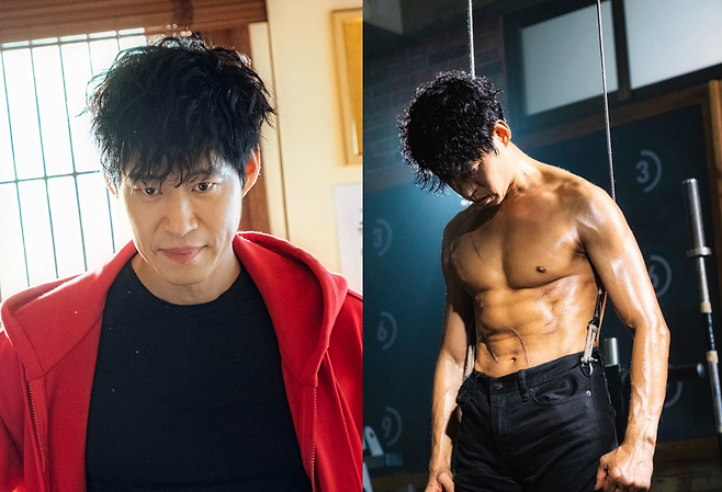 '60세까지 스트레칭할 것'이라고 호언장담한 유준상. 실제로 50대 중반인 그는 꾸준한 관리로 30대 못지않은 외모와 체력을 유지하는 것으로 유명한데, 드라마 '경이로운 소문'에서도 감탄이 나올 탄탄한 근육질 몸매를 자랑한 바 있다.