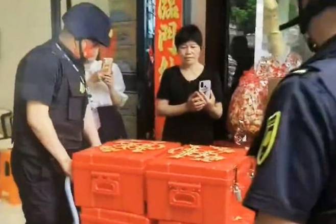 중국 저장성의 한 약혼식장에서는 차이리를 주기 위해 보안요원까지 고용했습니다.