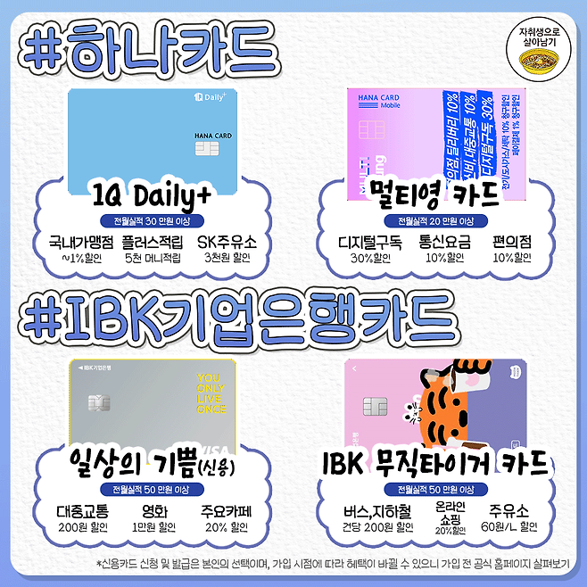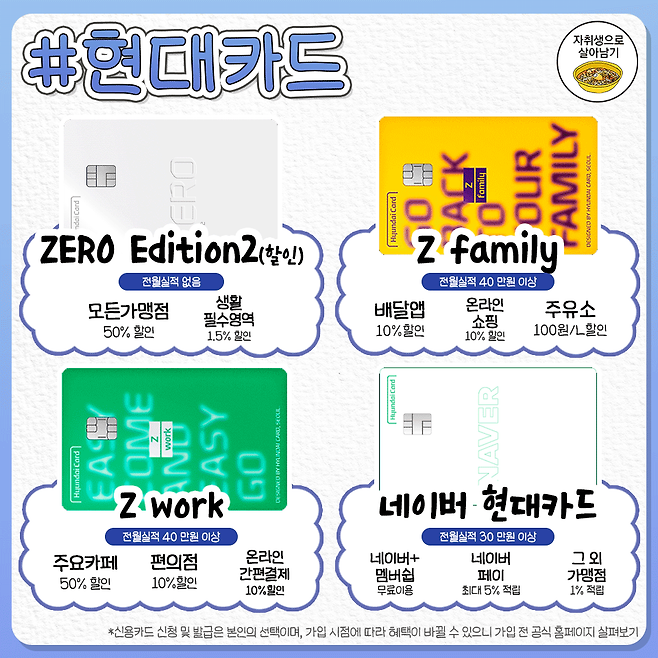 한눈에 싹 정리한 카드사별 신용카드 대표 혜택들