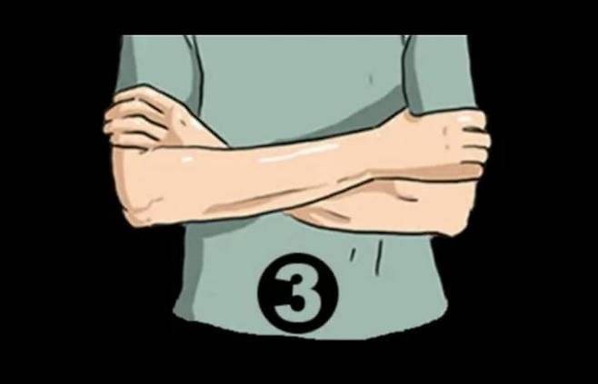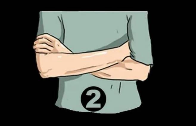 이 자세로 팔짱을 낀다면 당신은 위뇌가 발달했다는 것을 말합니다. 우뇌는 창의력이나 직관력과 관련된 부분인데요. 통찰이나 협업 능력이 뛰어나다고 할 수 있습니다.