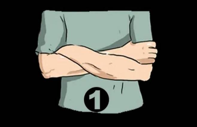 이 자세로 팔짱을 낀다면 당신은 위뇌가 발달했다는 것을 말합니다. 우뇌는 창의력이나 직관력과 관련된 부분인데요. 통찰이나 협업 능력이 뛰어나다고 할 수 있습니다.