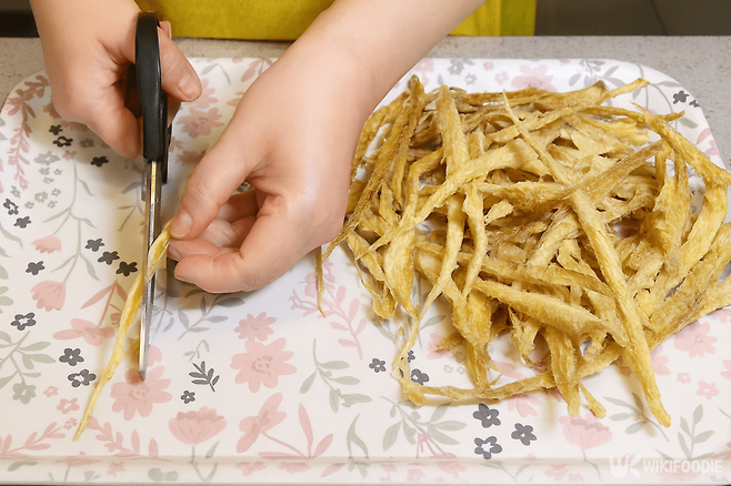 1. 황태채 150g을 먹기 좋은 크기로 자르고 가시를 제거한다.