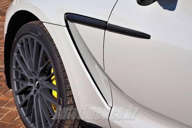 뒤는 새로운 립 스포일러가 추가된 루프 윙이 핵심이다. 다운포스를 올려 고속 안정성을 높인다. 애스턴마틴 패밀리-룩을 맞춘 테일램프는 유연한 곡선을 그리며 가로로 길게 뻗어있다. 트렁크는 블랙 로고와 브랜드 레터링이 전부다. 그만큼 군더더기 없이 깔끔한 모습이다. 시선을 아래로 두면 공격적인 형태의 범퍼가 있다. 날카로운 디퓨저는 물론 여러 겹으로 감싸 입체감을 키운다. 쿼드 배기 시스템은 일체형이며 두께가 상당해 기대를 끌어 올린다.