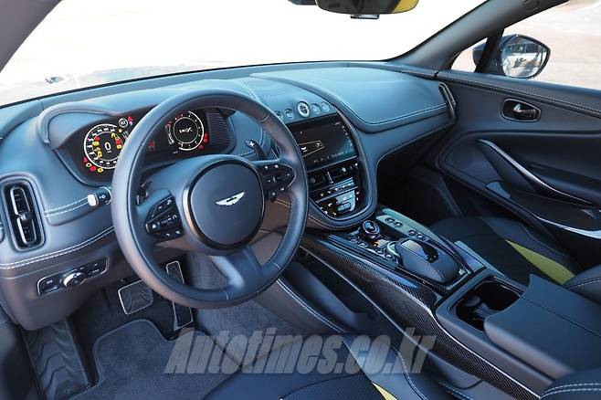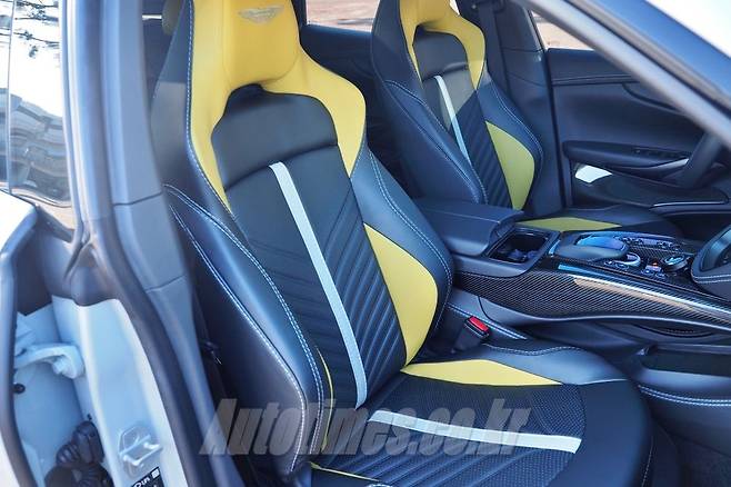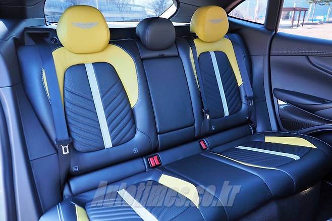그 중에서도 헤드레스트 일체형 스포츠 버킷 시트는 물건이다. 컬러 조합도 훌륭할 뿐만 아니라 볼스터 기능을 포함에 몸을 잡아 주는 능력이 수준급이다. 모든 시트는 16방향으로 조정 가능하며 전자식 스위치를 포함한다. 가죽과 알칸타라 등 고급 소재를 적용했고 머리 받침에 각인된 애스턴마틴 로고 외에 등받이부터 이어지는 스트라이프가 역동적인 감각을 더한다. 그래서인지 운전석에 앉으면 좀처럼 내리고 싶지 않다