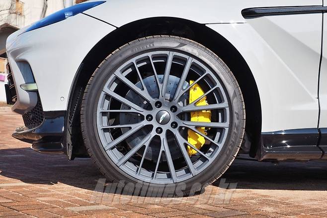DBX 707은 애스턴마틴의 첫 SUV DBX를 바탕으로 잠재된 능력을 극한까지 끌어올린 초고성능 SUV다. 그만큼 화려한 외관이 시선을 끈다. 앞은 애스턴마틴을 상징하는 그릴이 포인트다. 기존 DBX와 비교해 크기를 한 층 더 키웠고 진하게 격자 무늬를 넣어 존재감을 높인다.