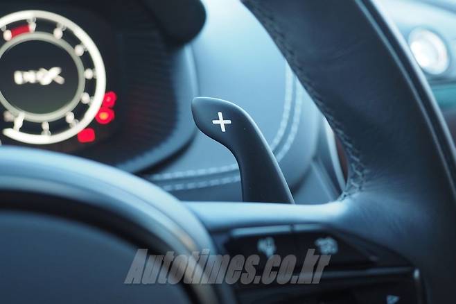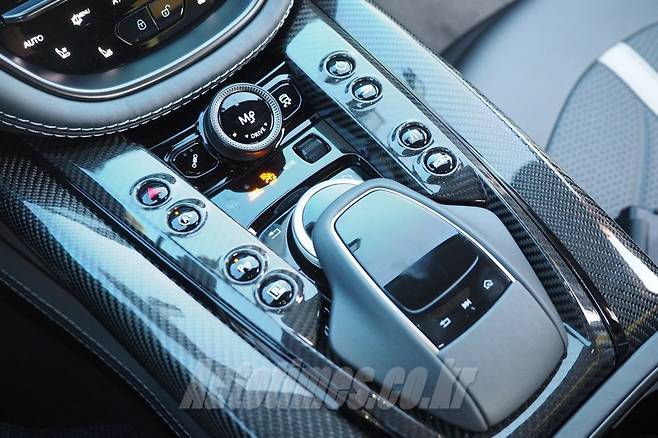 브릿지 형태의 센터 터널은 제법 화려하다. 버튼이 상당히 많은데 모두 운전 즐거움을 위한 마법 스위치라 만족스럽다. 드라이브 모드를 바꿀 수 있는 조그셔틀은 세심하게 다듬어 퀄리티가 상당하다. 스티어링 휠은 크기가 다소 작은 편이다. 손에 쥐는 맛이 좋고 커다란 패들 시프트와 합도 뛰어나다.