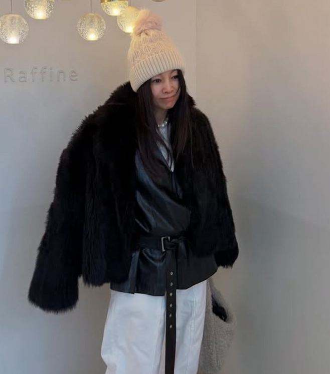 블랙 퍼자켓을 걸쳤죠.