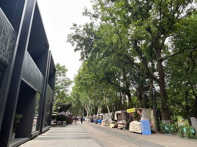거리 안쪽으로 들어가니 은은한 느낌의 구슬 등 다양한 기념품을 파는 매대들이 즐비하고, 작은 물길 바로 앞에 자리한 호텔은 꽤 고즈넉해 보인다. 워낙 유명한 거리라 밤에는 시끄러울 것 같은데, 그래도 이런 곳에서 하루쯤 묵어보는 것도 괜찮을 듯싶다.