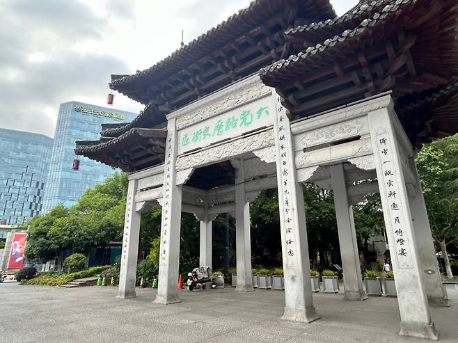 좀 더 깊숙이 들어가자 고풍스런 건물들이 시선을 잡아끈다. 서울시가 지정한 ‘미래유산’처럼 항저우의 오래된 건물들에도 ‘항저우시 역사건축물’이라는 표식이 붙어 있다.