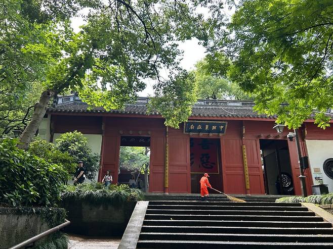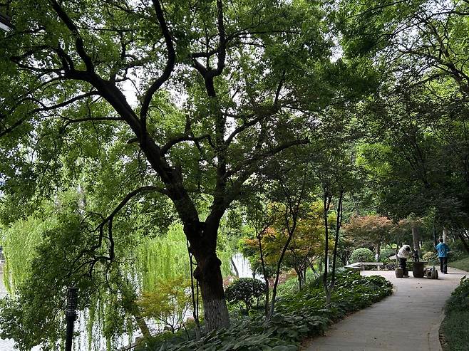 서호의 북쪽을 돌아본 후 택시를 타니 정확히 남송어가 입구에 내려준다. 물론 지하철로도 갈 수 있다. 1호선을 타고 딩안루역에서 내린 후 D 출구로 나가면 된다. 30도를 넘는 온도지만 오전에 비가 내려서인지 덥다는 느낌은 많이 들지 않는다. 그래도 여름을 향해 가는 날씨인지라 입구가 초록으로 싱그럽다.