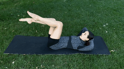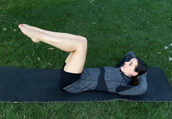 매트에 등을 대고 누운 뒤 다리를 들어 무릎을 90도로 구부립니다. 두 손은 머리 뒤로 옮기고 상체를 약간 들어 코어에 힘을 줍니다. 왼발을 바닥으로 내려 터치한 뒤 다시 들어 올리고, 이어서 오른발을 같은 방식으로 내렸다가 돌아오며 반복합니다.