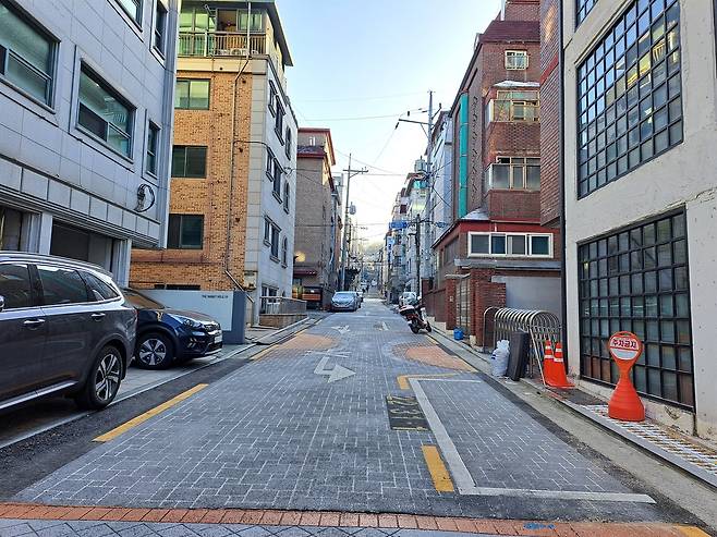 | ▲ 대학동 골목 예전 모습은 간데 없고, 4~5층의 다가구 형태로 늘어선 집이 언덕 끝까지 이어진다. |