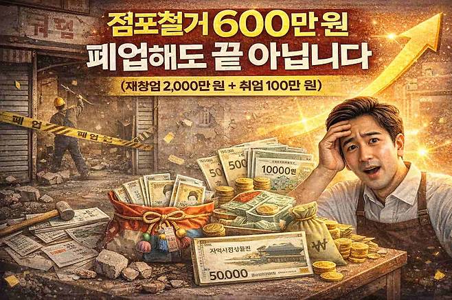 특히 점포철거비 최대 600만 원 상향, 재창업 최대 2,000만 원, 취업 성공 시 최대 100만 원 지급 등 체감 혜택이 크게 늘었다.