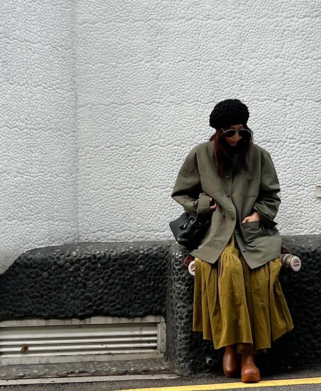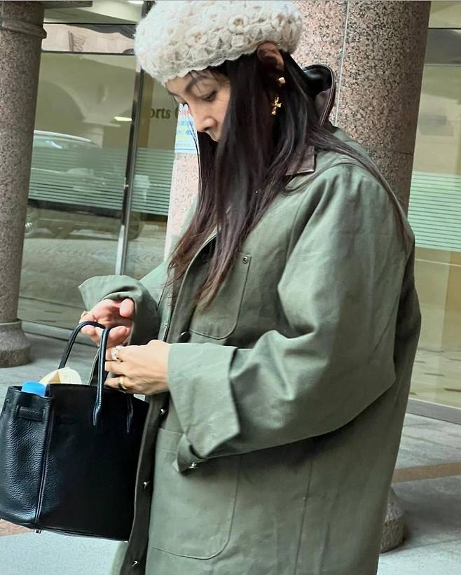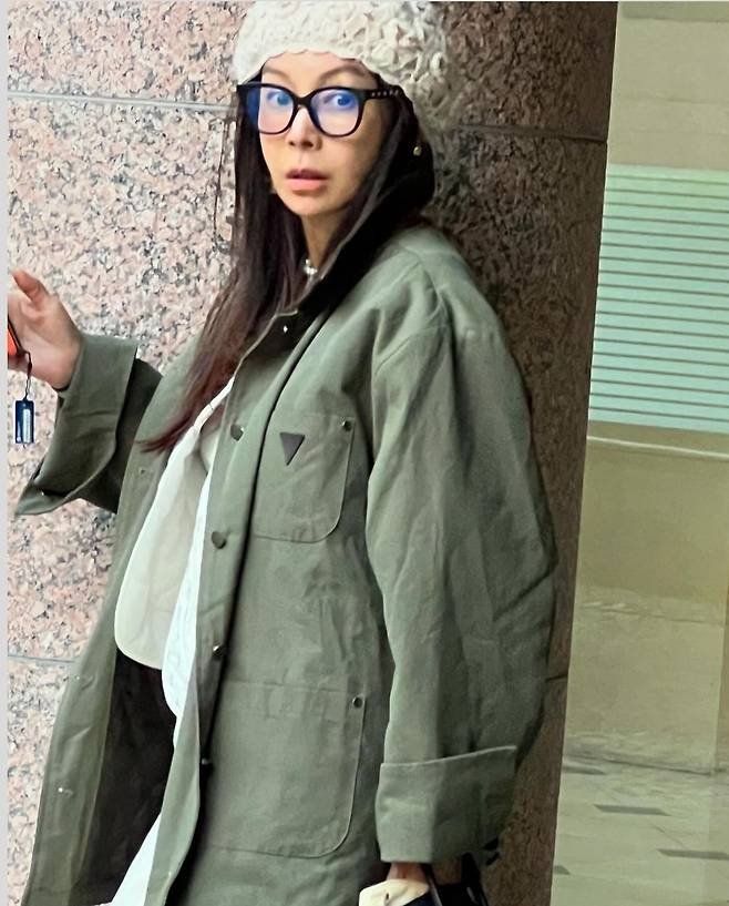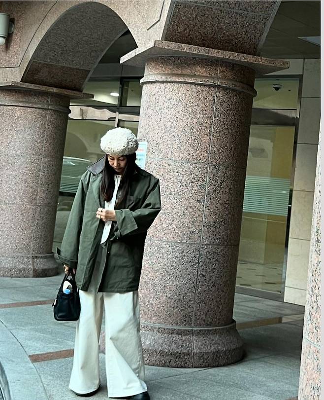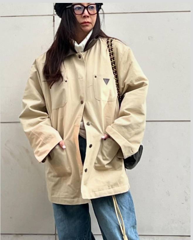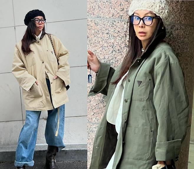 황신혜는 베이지와 카키 컬러의 아우터를 각각 활용해 두 가지 캐주얼 룩을 완성했습니다.