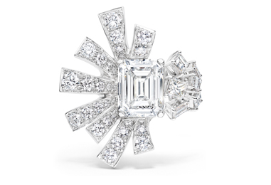 쇼메 데페랑테 화이트 골드링. 6캐럿의 에머랑드 컷 다이아몬드 세팅된 반지