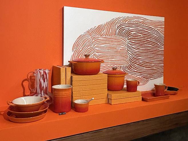 2층에는 다양한 르크루제 제품을 직접 경험할 수 있는 브랜드 라운지와 마켓 테이블이 마련돼 있다. 비슷한 계열의 컬러를 기준으로 냄비, 그릇, 컵, 주전자 등 다양한 제품들을 전시하여 구경하는 재미가 쏠쏠하다. 팝업 기간 동안 전시된 제품을 구매하면 크리스마스 선물 등의 특별한 혜택을 받을 수 있다. 평소 르크루제의 제품에 관심이 있었다면 직접 눈으로 보고 구매까지 할 수 있는 좋은 기회가 될 것.
