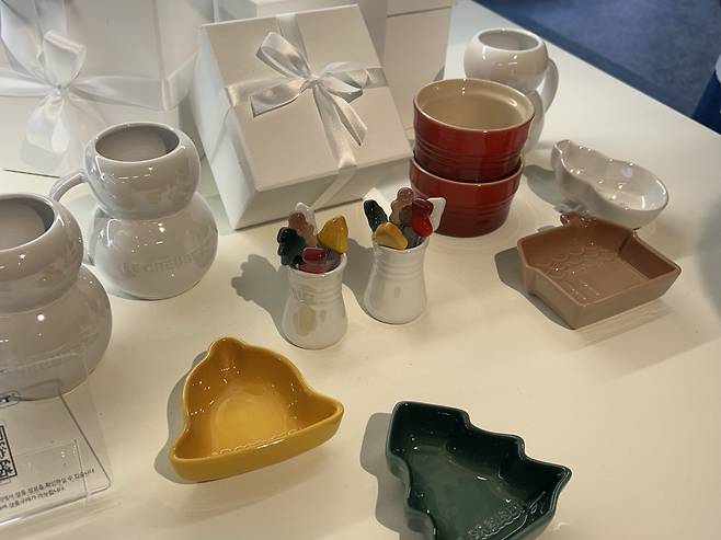 1층에는 2024 르크루제 크리스마스 컬렉션 제품들이 전시돼 있다. 르크루제의 크리스마스 컬렉션으로 꾸며진 시그니처 크리스마스 트리에서는 포토 이벤트를 즐길 수 있다. 크리스마스에 어울리는 컬러와 디자인의 제품들은 마치 동화 속 눈 내리는 크리스마스 세상을 연상하게 한다. 특히 시그니처 원형냄비의 뚜껑에 새겨진 크리스마스 잎, 열매 프린팅의 디테일이 인상적이다. 르크루제만의 고급스러움과 특별함을 담은 각종 그릇들은 감각적인 크리스마스 파티 및 연말 다이닝 테이블을 연출하는 데 안성맞춤이다.