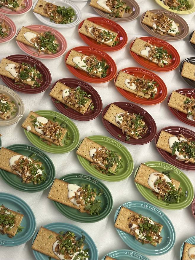 에디터는 12월 4일 프리뷰 데이에 참석하여 권성준 셰프의 밤 티라미수와 조서형 셰프의 보리새우 미나리전을 맛봤다. 두 디저트 모두 르크루제의 TNS 프라잉팬을 활용해 만들어졌다. <흑백요리사> 내에서 화제된 디저트인 밤 티라미수는 과연 기대를 충족시키는 맛이었다. 달콤하고 고소한 밤 페이스트에 커피 향이 더해져 풍부한 풍미를 자랑하고, 입안에 넣는 순간 사르르 녹아내리는 부드러운 식감이 돋보였다. 보리새우 미나리전은 샌드 같은 느낌으로, 바삭한 새우와 향긋한 미나리가 조화롭게 어우러졌다.