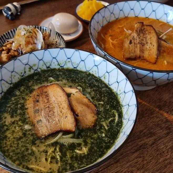 초록색 국물로 시선 강탈, 미도리카메 바질라멘이 맛있는 합정 잇텐고