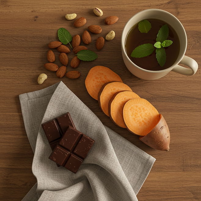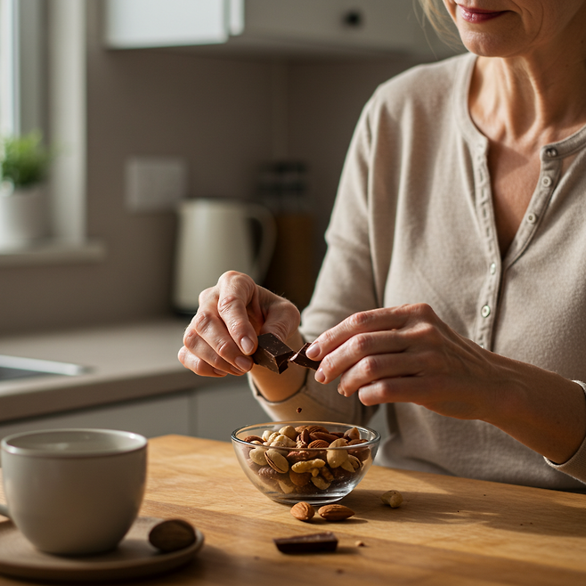 1. 설탕 많은 간식 → 다크 초콜릿 + 견과류 조합