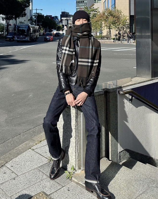 키가 큰 체형과 여유 있는 실루엣이 만나 과하지 않으면서도 시선이 자연스럽게 집중되는 스타일이다.