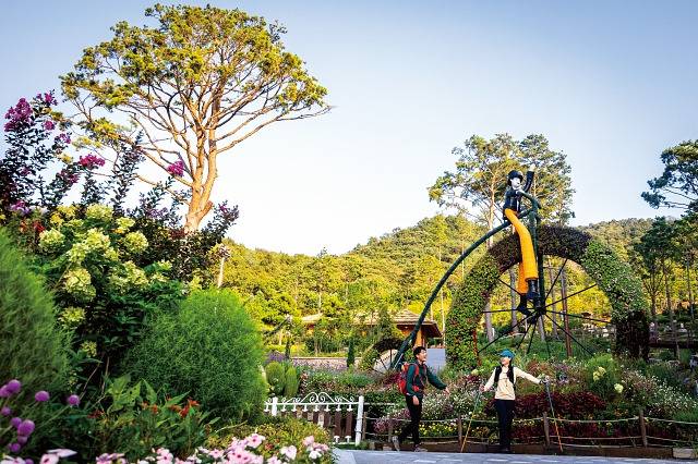 ‘하늘여행’을 끝내고 뭍으로 내려오면 화려한 정원여행이 시작됩니다. 화개산 북쪽 기슭에 자리한 화개정원은 강화군에서 2023년 스카이워크와 함께 조성한 최신식 정원입니다. 특히 ▲물의 정원 ▲역사문화정원 ▲추억의 정원 ▲평화의 정원 ▲치유의 정원 등 다섯 가지 테마로 구성돼 있어 화려한 볼거리를 자랑합니다. 갖가지 화초와 수목이 늘어선 산책길 사이로 강화의 상징인 저어새 등 특별한 조형물들을 찾아보는 재미도 쏠쏠합니다.