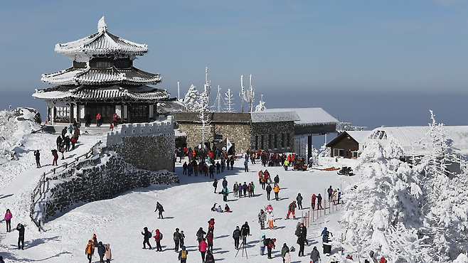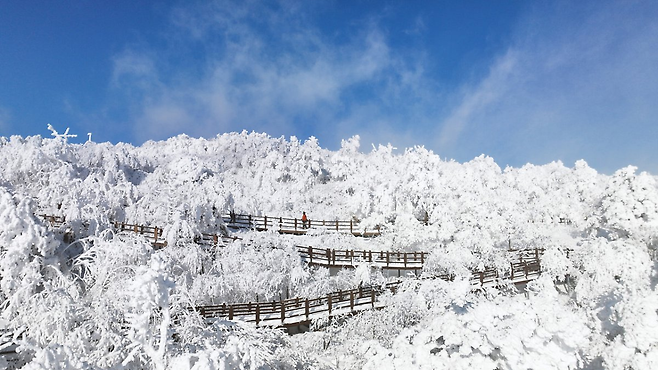 덕유산의 눈 덮인 풍경은 겨울을 대표하는 아름다움입니다. 관광 곤돌라를 타고 해발 1,520m의 설천봉에 오르면 한눈에 펼쳐지는 설경이 감탄을 자아냅니다. 설천봉에서 덕유산 정상인 향적봉까지는 약 20분 거리로, 부담 없이 겨울 하이킹을 즐길 수 있습니다.