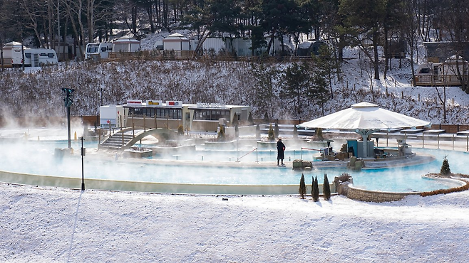 서울에서 단 1시간 거리의 이천 테르메덴은 겨울에 더욱 빛나는 힐링 스팟입니다. 동양 최대 규모의 바데풀과 인피니티풀이 있는 이곳에서는 숲속에서 따뜻한 노천온천을 즐길 수 있습니다. 하얗게 물든 설경을 바라보며 몸과 마음을 녹이는 시간을 가져보세요.