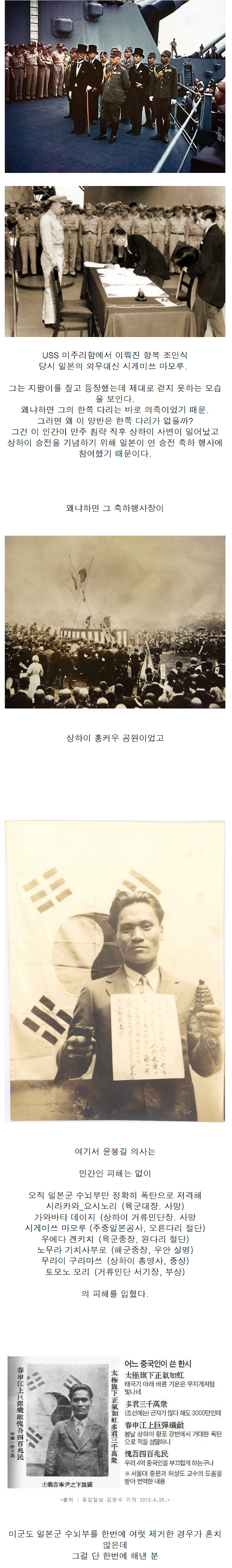 일본 항복 때 일본 대표가 한쪽 다리가 없었던 이유