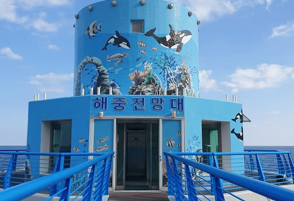 울릉도 북쪽 끝 천부리에 위치한 해중전망대는 바다 위로 튀어나온 투명 유리 전망대로, 아찔하면서도 인상적인 체험을 할 수 있는 곳입니다. 바다 위를 걷는 듯한 감각은 남녀노소 누구에게나 신선한 경험이 되는데요. 날씨가 맑은 여름날에는 발 아래로 물고기들이 노니는 모습까지 보일 정도입니다.