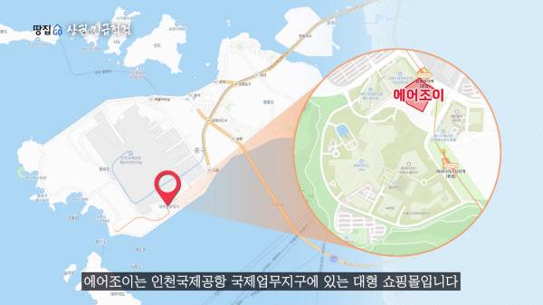 이 건물은 인천국제공항 국제업무지구에 있는 대형 쇼핑몰 ‘에어조이’다. 지하 3층~지상 9층 규모로 2005년 완공했다. 연면적만 1만9000평(4만9812㎡)에 달한다. 땅은 인천공항공사 소유로, 쇼핑몰을 짓는데 809억원을 들였다. 점포 수는 총 518개다. 국제업무지구에는 파라다이스시티와 그랜드 하얏트 호텔 등이 있다.
