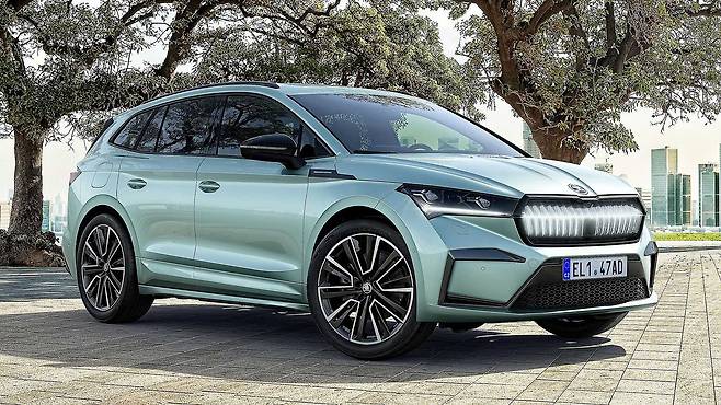 스코다 엔야크는 넓은 내부와 358㎞의 전기 주행거리로 반려견 동반 여행에 적합하다. 차량 구매 시 펫 팩 옵션을 선택할 수 있어 편리함을 더했으며, 조용하고 편안한 승차감이 특징이다.