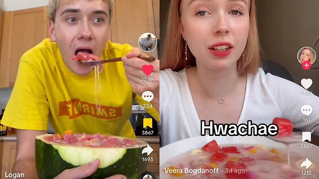 amyflamy라는 채널을 운영하는 한국인 틱톡커는 새벽에 약 2분 가량의 화채 먹방 영상을 영어로 설명하며 올렸는데, 그 조회수가 23일 현재 640만을 넘고 있다.
