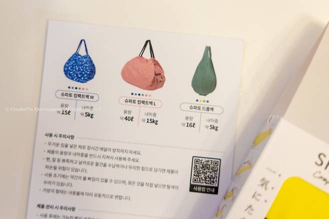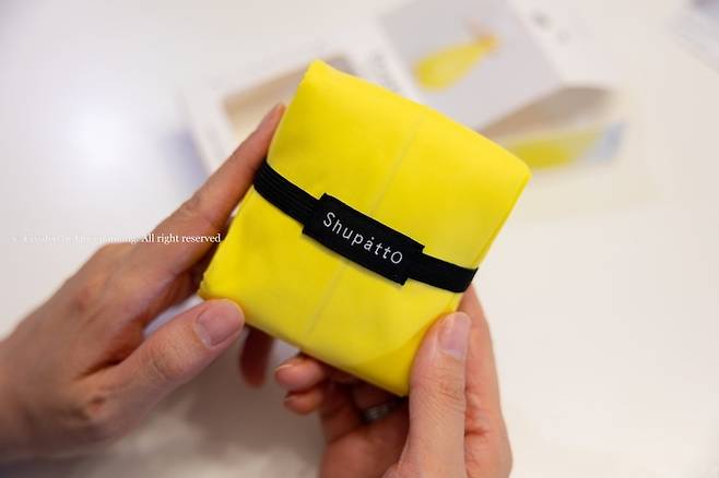 신기하게, 슈파토 장바구니(에코백)에 눈길이 가더라고요. 3가지의 각기 다른 디자인의 사이즈와 컬러 중에서 선택할 수 있는데, 제가 구입한 제품은 슈파토 드롭백 노란색 제품으로 16리터입니다.