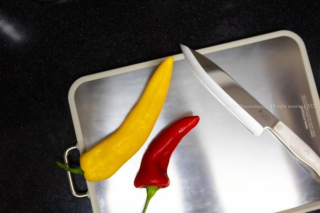 단, 크고 묵직한 스테인리스 도마라는 장점이 매일 사용하기에는 단점이기도 해서 가벼운 도마도 하나 추가 구입했고, 요리에 따라 섞어서 사용 중이랍니다.